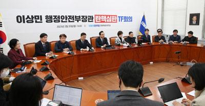 박홍근 민주당 원내대표는 이날 국회에서 열린 \'이상민 행정안전부 장관 탄핵심판 태스크포스(TF) 회의\'에서 \"탄핵소추 의결서가 헌법재판소(헌재)에 제출되고 헌재는 절차에 따라 심리를 개시했다\"고 밝혔다.