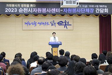 (사)순천시자원봉사센터가 지난 3일 순천시청 대회의실에서 순천시자원봉사센터에 등록된 500여 개 자원봉사단체장을 대상으로 자원봉사단체장 간담회를 진행했다고 밝혔다.