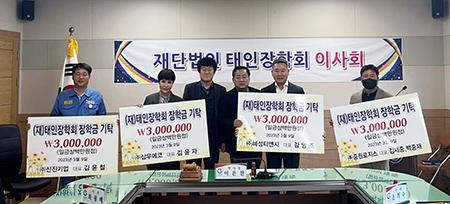 조희수 태인동장은 “모두가 어렵고 힘든 시기에 지역의 후배들을 위해 장학기금을 기탁해주신 이사님들과 김윤자 대표님께 감사드린다”고 감사의 뜻을 전했다.