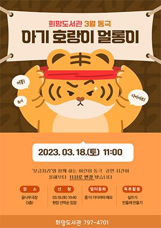 올해 공연은 3월부터 12월까지 총 9회(8월 제외) 진행되며, 첫 시작을 알리는 3월 공연은 오는 18일 오전 11시에 희망도서관 꿈나무극장에서 열린다. 이날 공연은 ‘아기호랑이 얼롱이’ 동극과 멀티동화 ‘좀 더 기다려야 해요’, 클레이를 활용한 ‘민들레 만들기’ 체험이 다채롭게 진행된다.