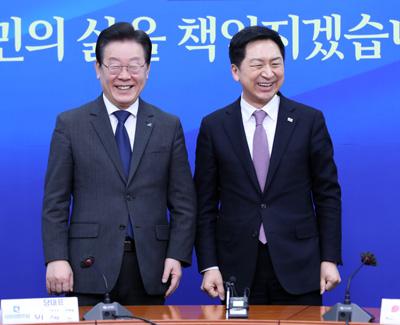 김 대표는 몇 가지 법안을 직접 거론하며 이 대표에게 신속 처리를 요청하기도 했다.