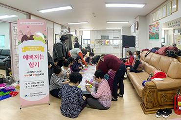 이를 통해 어르신들의 신체 활동을 위한 건강 스트레칭, 아로마를 이용한 천연 비누 만들기 등을 진행했다.