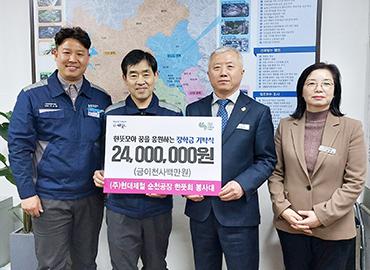 ㈜현대제철 순천공장 한뜻회 봉사대가 저소득 초중고 학생들을 위해 지난 17일 순천시에 장학금을 기탁했다.