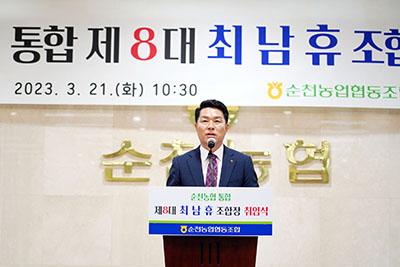 순천농협은 21일 본점 대회의실에서 제3회 전국동시조합장선거에서 당선된 통합 제8대 최남휴 조합장 취임식을 개최했다.