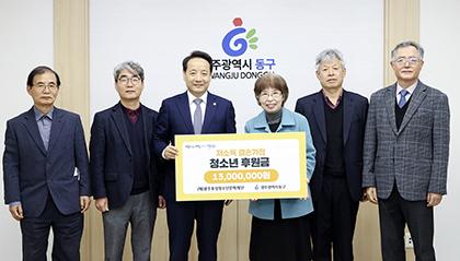 광주 동구(청장 임택)는 최근 (재)광주효성청소년문화재단으로부터 지역 인재 육성·발굴을 위해 사용해달라며 후원금 1천3백만 원을 기탁받았다고 밝혔다.
