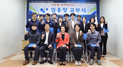 여수시도시관리공단은 지난 23일 오후 공단 회의실에서 새내기 직원 16명과 임직원 10명이 참여한 가운데 임용장 교부식을 열었다고 밝혔다.