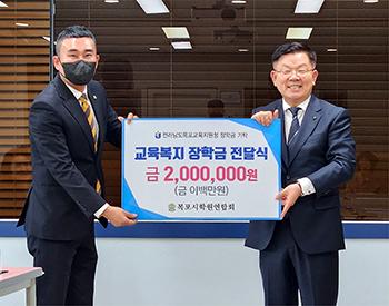 목포교육지원청은 지난 27일 오후 학원연합회 관계자들이 참석한 가운데 (사)목포시학원연합회로 부터 장학금 200만원을 전달받았다.