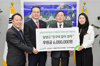 담양군(군수 이병노)은 지난 28일 초록우산어린이재단 전남지역본부의 지역밀착기금사업 후원금 전달식을 개최했다.