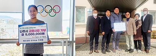 나주가 고향인 배드민턴 간판스타 안세영이 또 한 번 고향사랑을 전해와 훈훈함을 자아낸다.