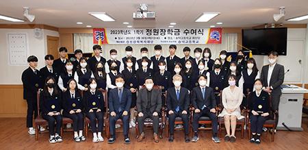 학교법인 청송학원 김용만 이사장이 지난 30일 정원장학복지재단을 통해 숭덕고등학교 재학생 대상으로 1학기 ‘정원 장학금’ 총 3200만 원을 지급했다.