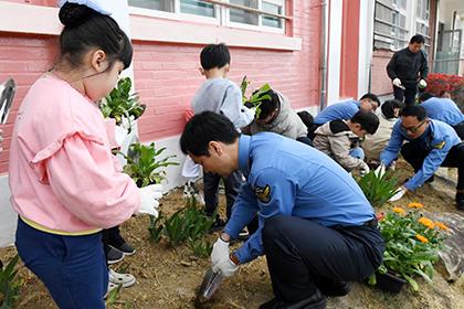 완도해양경찰서는 제78회 식목일을 맞아 4일 완도 청해초등학교 어린이들과 \'함께 GREEN 식목일\'을 주제로 행사를 진행했다고 밝혔다.