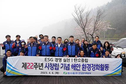 한국수력원자력㈜ 한빛원자력본부 6일 창립 22주년을 맞아 영광 백수 해안도로 일원에서 해안 정화 활동을 펼쳤다.