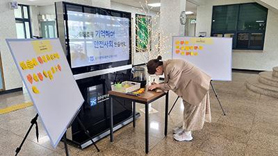 12일 동부교육지원청에 따르면 이번 행사는 동부교육지원청 정성숙 교육장을 비롯한 전 직원들이 안전한 학교와 사회를 만드는 다짐의 시간으로 진행됐다. 직원들은 ‘아홉번째 봄, 기억하겠습니다’의 마음을 담아 1층 세월호 추모관에서 추모 메시지를 남기기도 했다.