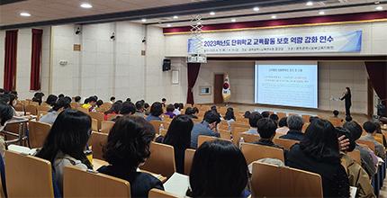 광주동부교육지원청이 지난 13~14일 교육연수원 중강당에서 ‘2023학년도 단위학교 교육활동 보호 역량강화 연수’를 성료했다.
