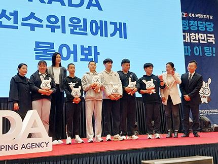 이날 기념식에서는 배구여제 김연경, 전 기계체조 국가대표 김나라, 핸드볼 레전드 홍정호, KADA 선수위원 및 식약처 조지훈 수사반장이 패널로 출연해 그동안 선수생활을 하면서 체감했던 도핑방지교육의 현실 그리고 향후 개선방향에 대한 의견을 제시했다.