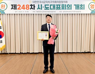 김태완 광산구의장(더불어민주당, 수완동·하남동·임곡동)이 18일 전국시군자치구의회의장협의회에서 주최한 제248차 시·도 대표회의에서 ‘지방의정봉사상’을 수상했다.
