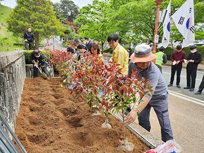 20일 학생독립운동기념회관에 따르면 이번 식목 행사는 관장, 과장 등 간부 포함 직원 30명이 참석했다. 직원들은 이용자에게 쾌적한 생활환경과 아름다운 경관을 제공하기 위해 기념탑 앞 화단에 홍가시나무 15수를 심었다.