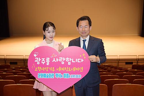 답례품으로는 네이밍도네이션을 선택했다. 고향사랑기부제의 광주시 답례품이다. 10만원 이상 기부자가 희망하는 본인 또는 가족·연인·친구 등의 이름을 광주문화예술회관 대극장 좌석에 새겨준다.