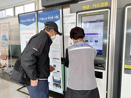 순천고속터미널은 지난해부터 유인 매표실을 폐쇄하고 전면 키오스크(무인발급기) 시스템을 도입했다. 직원들을 투입해 이용객의 불편사항을 살피고 있지만 노인 등 디지털 약자들이 키오스크 발권 자체에 어려움을 호소해 사용법을 안내해 줄 인력이 더 필요한 상황이었다.