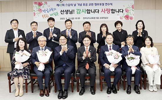 김대중 전남교육감은 수상자들에게 그간의 교육에 대한 헌신과 노고에 존경과 감사의 마음을 전하며 “앞으로도 ‘함께 여는 미래 탄탄한 전남교육’ 발전을 위해 애써줄 것”을 당부했다.