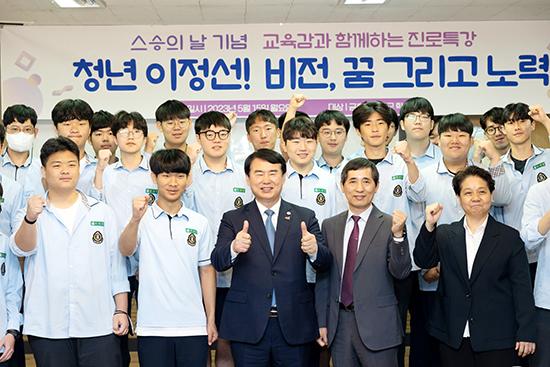이정선 교육감이 15일 스승의 날을 맞아 금호고 2-4반 학생들 대상으로 ‘비전, 꿈 그리고 노력’이라는 주제의 진로 특강을 실시했다.