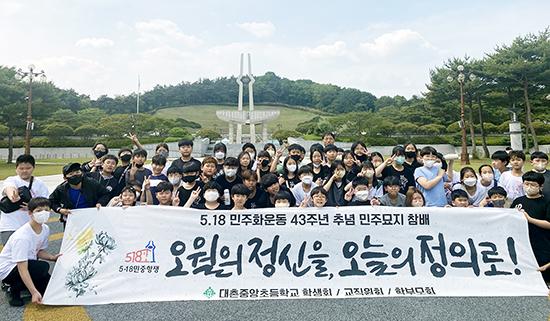 대촌중앙초는 평소에 다양한 체험교육으로 민주·인권·평화교육을 실천하기 위해 노력하고 있다. 포용적 민주주의를 실현하는 성숙한 민주시민 양성 교육의 필요성을 공감하고 5·18민주화운동 교육 활성화 계획을 세워 실시했다.