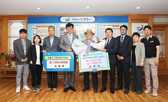 장흥군은 지난 16일 안양면 향우 김종태 씨가 인재육성장학금 200만원과 고향사랑기부금 100만원을 기탁했다고 밝혔다.