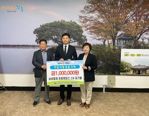 장흥군 장동면지역사회보장협의체는 지난 17일 김기철 삼성화재 장흥영업소 소장이 이웃돕기 성금으로 100만 원을 기탁했다고 밝혔다.