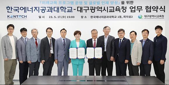 한국에너지공과대학교(KENTECH)와 대구광역시교육청이 지난 17일 ‘미래교육 프로그램 운영 및 글로벌 인재 양성’을 위한 업무 협약을 체결했다고 밝혔다.