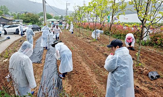 이를 위해 지난 4월 말부터 위원들이 직접 묵었던 땅을 정리하고 거름을 주는 등 사전작업을 했으며, 지난 18일 비가 내리는 가운데 주민자치위원 30명이 참여해 생강을 심었다.
