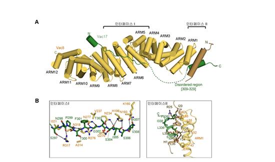 연구팀은 X레이 구조법을 통해 Vac8-Vac17 복합체의 고해상도 구조를 처음으로 규명했다. 해당 복합체는 두 개의 결합 인터페이스를 형성한다. 특히 연구팀은 인터페이스 형성에 직접 관여하는 아미노산을 확인했으며, 이 아미노산에 돌연변이가 일어난 Vac8 및 Vac17을 가진 효모에서는 세포 분열 시 리소좀이 딸세포로 이동하지 못하는 것을 관찰했다. Vac8 단백질이 리소좀 수송을 조절한다는 것을 직접적으로 입증한 것이다.