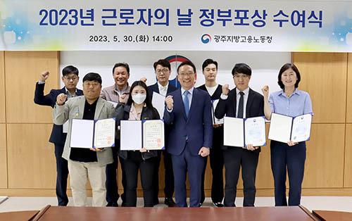 광주고용노동청은 30일 광주와 전남북, 제주 지역 유공자에게 근로자의 날 정부 포상을 수여했다.(사진=광주고용노동청 제공) 2023.05.30.