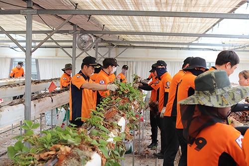 이번 농촌 일손 돕기는 농촌 인구 고령화로 인해 어려움을 겪고 있는 칠량면과 군동면에 위치한 농가를 대상으로, 7일부터 9일까지 총 3일간 마늘 수확, 비닐하우스 주변 환경정리 등에 일손을 보탰다.