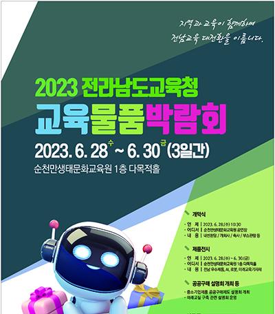 전남도교육청은 28~30일 순천만생태문화교육원 1층 다목적홀에서 \'2023 교육물품박람회\'가 펼쳐진다고 12일 밝혔다.