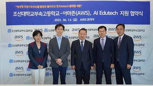 학교법인 조선대학교와 조선대학교부속고등학교가 지난 16일 서울 아마존 코리아(Amazon Web Service, 이하 AWS) 본사에서 AI 기반의 미래교육 환경 구축을 위한 AWS와 AI 에듀테크 지원 사업에 대한 협약을 체결했다고 18일 밝혔다.