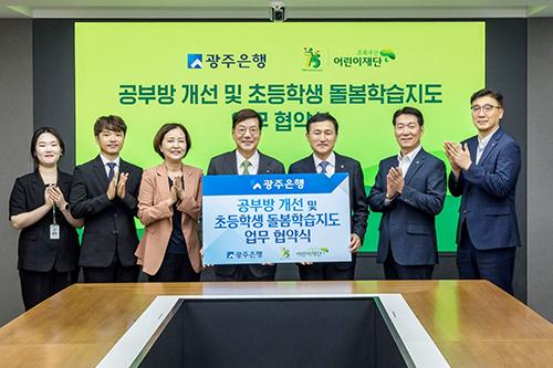 광주은행은 최근 광주은행 본점에서 고병일 광주은행장과 황영기 초록우산어린이재단회장 및 관계자가 참석한 가운데 ‘공부방 개선 및 초등학생 돌봄지도를 위한 업무 협약식’을 가졌다고 22일 밝혔다.