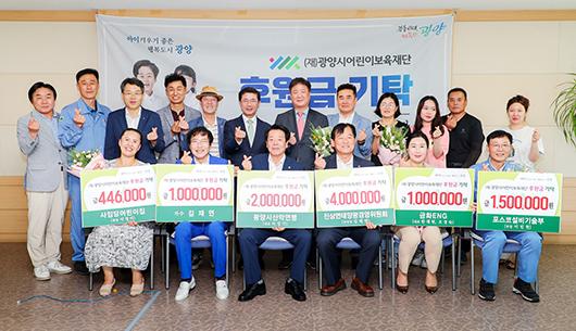 광양시는 (재)광양시어린이보육재단에 기업, 단체, 어린이집의 따뜻한 후원의 손길이 이어지고 있다고 밝혔다.