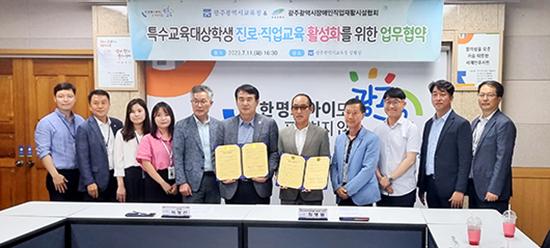 광주시교육청이 지난 11일 광주장애인직업재활시설협회와 ‘특수교육대상학생 진로·직업교육 활성화를 위한 업무협약’을 체결했다.