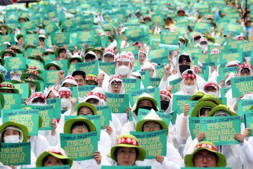 이날 간호사, 간호조무사, 의료기사 등 60여 개 직종의 보건의료노조 조합원 약 2만명은 이날 서울 광화문~대한문 일대에서 열린 총파업 대회와 민주노총 전국 노동자 대회에 참가했다.