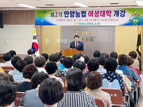 안양농협 김영중 조합장은 \"시대 변화를 감안해 지역을 선도하고 계시는 의식 있는 여성분들께 농업.농촌.농협의 현실을 이해시키고, 잠재된 능력을 개발하여 경쟁력 있는 인력 양성을 목적으로 여성대학을 개설하게 됐다\"며 ”이번 여성대학을 통해 삶의 질이 더욱더 향상 될 수 있는 좋은 기회가 되시길 바라며, 가정과 지역사회를 이끌어 가는 아름답고 건강한 여성으로 거듭나길 바란다”고 말했다.