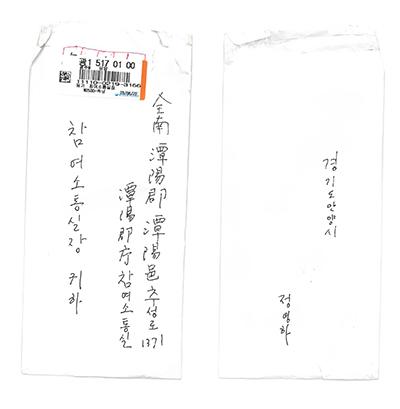 26일 담양군에 따르면 지난달 22일 담양군청 참여소통실로 편지 한 통이 도착했다. 수신인은 \'참여소통실장\', 발신인은 \'경기도 안양시 정영하\'로 적혀 있었다.