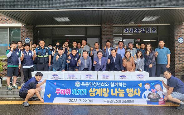 광양시 옥룡면 청년회는 지난 22일 중복을 맞아 면내 주민을 위해 200마리의 삼계탕과 과일 등을 전달하는 삼계탕 나눔 행사를 실시했다고 밝혔다.