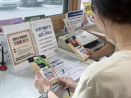 광주시 서구 동천동 행정복지센터에서 실시하고 있는 ‘쓰레기 줄이기 실천 서약 캠페인’이 주민들의 큰 호응을 얻고 있다.