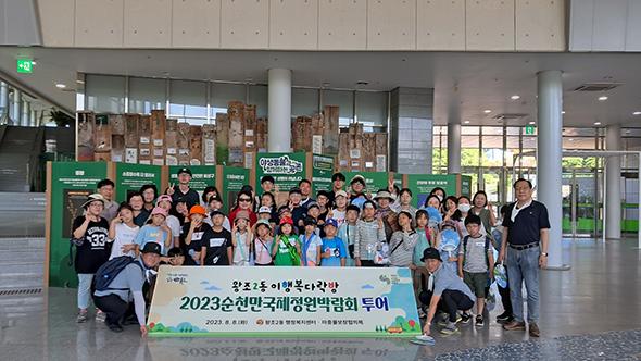 순천시 왕조2동 마중물보장협의체(위원장 박종선) 위원들과 왕조2동 어린이 50여 명이 지난 8일, 2023순천만국제정원박람회장을 방문했다.