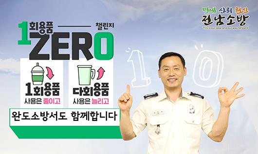 김옥연 완도소방서장이 10일 생활 속 일회용품 사용 줄이기 실천을 약속하는 ‘일회용품 제로(1zer0) 챌린지’에 동참했다.