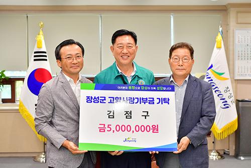 장성군 황룡면 출신 김점구 장성군민회 회장이 22일 고향사랑기부금 500만 원을 군에 기탁했다.