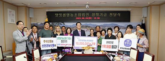 맛잇섬영농조합법인 임원과 조합원들은 28일 신안군청을 방문해 신안군장학재단에 1000만 원을 기탁했다.