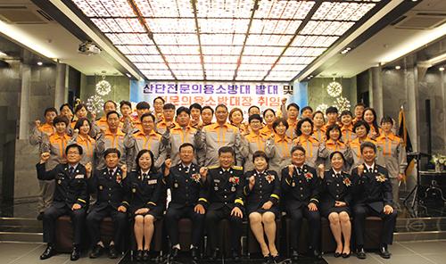 새롭게 발대한 산단전문의용소방대는 여수국가산업단지 재난 발생 시 초기 소방력 지원과 신속하고 전문적인 소방서비스 제공을 다짐했다.