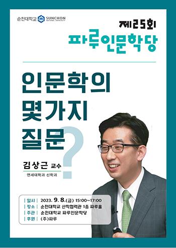 순천대학교는 오는 8일 오후 3시 산학협력관 파루홀에서 연세대학교 신학과 김상근 교수를 초청해 ‘인문학의 몇 가지 질문’을 주제로 스물 다섯번째 파루인문학당 강좌를 개최한다고 밝혔다.