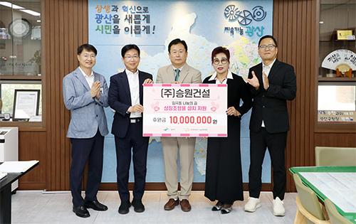㈜승원건설이 지난 4일 광산구 제1호 ‘임곡동 나눔의 길’ 조형물 제작에 동참하는 의미로 1000만 원을 투게더광산 나눔문화재단에 기탁했다.
